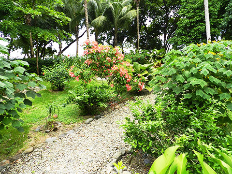 Coconut trees and wild almond trees separating the balconies form the beach